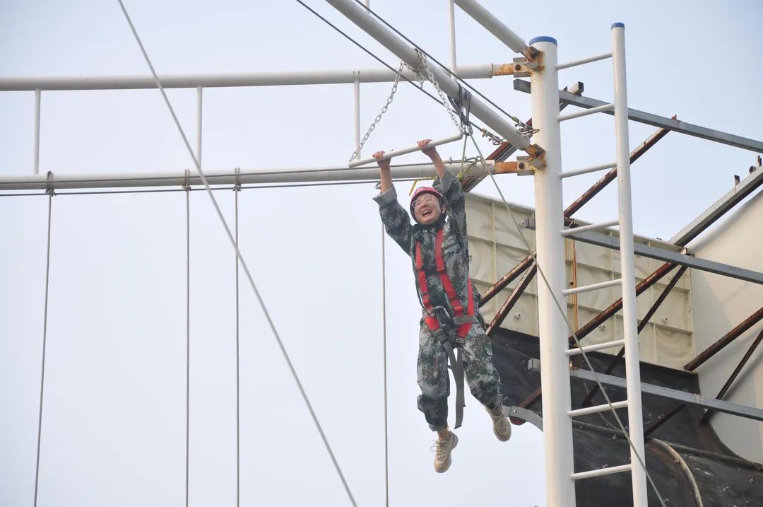 在教练的带领下,两支队伍的成员们分别挑战了“众志成城”“团队60秒”“空中抓杠”“信任背摔”“击鼓颠球”“挑战NO.1”“毕业墙”等项目。这些项目惊险刺激,难度系数大,大家激情澎湃、勇往直前,克服畏难情绪和恐惧心理,互相加油、相互鼓励、迎难而上,不达目的决不罢休。在交叉进行的体验过程中,成员们密切配合,不断挑战极限、超越自我,攻克了一个又一个认为不可逾越的难关。